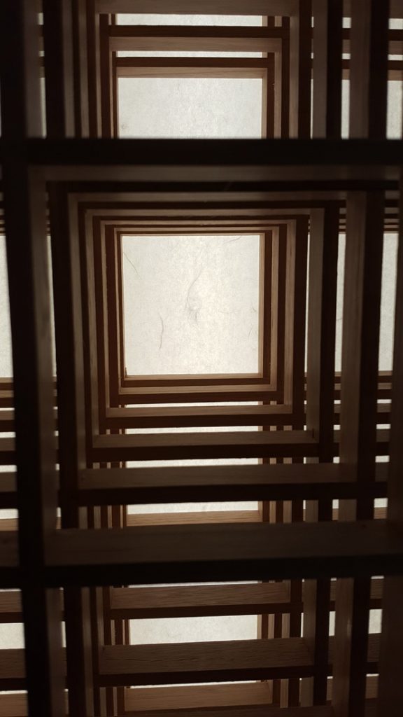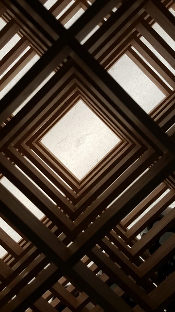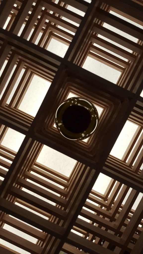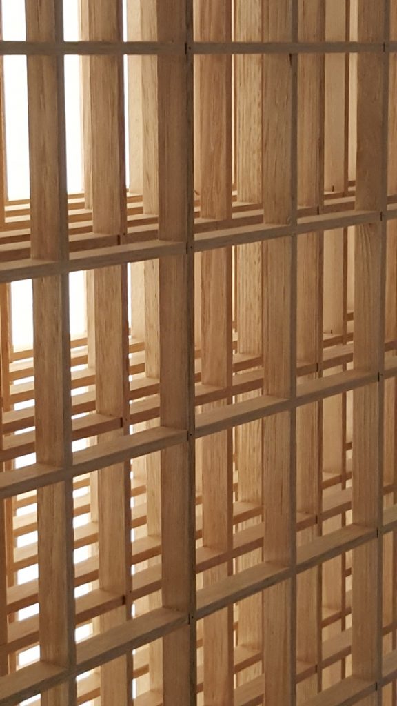 The modules can be slightly, sideways stepped or aligned to provide a lattice work of timber kumiko (shoji slats).